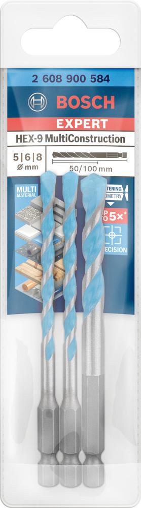 | Satzinhalt | 3-tlg. HEX-9 MultiConstruction Bohrer-Set |