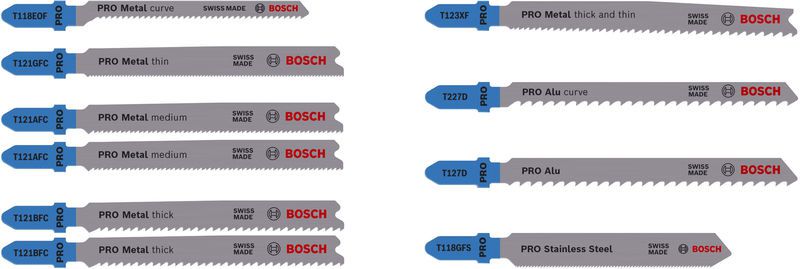 Herausragende Lebensdauer in Metall und Aluminium! Du bist Metallarbeiter und benötigst einen Satz langlebiger Stichsägeblätter für vielfältige Einsätze? Mit den Stichsägeblättern des PRO Metal and Alu Sets kannst du gerade und Kurvenschnitte in Metall, Edelstahl und Aluminium machen – immer und immer wieder. Das PRO Metal and Alu Set beinhaltet langlebige Stichsägeblätter aus Schnellarbeitsstahl (HSS) und Bi-Metall: Eine HSS-Zahnleiste, die mit einem Körper aus Kohlenstoffstahl (HCS) verbunden ist, sorgt für die notwendige Stabilität und Haltbarkeit. Die Blätter verfügen über unterschiedliche Formen und Zahngeometrien, damit du verschiedene Anwendungen in der Metallbearbeitung problemlos bewältigen kannst.