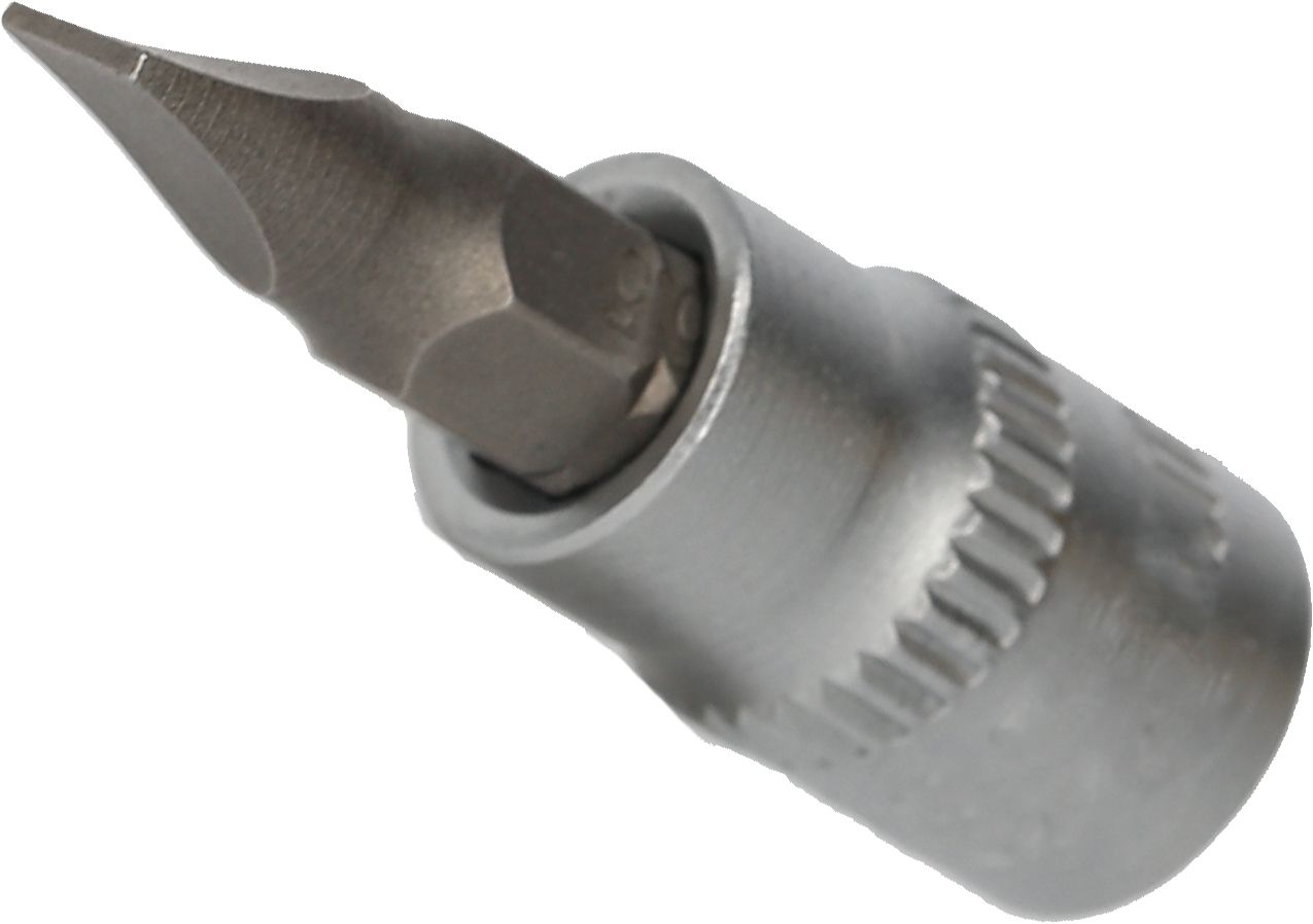 Die BRILLIANT TOOLS Bit-Stecknuss BT020812 hat einen 1/4" (6,3 mm) Innenvierkant-Antrieb, der nach DIN 3120 gefertigt ist. Der eingepresste phosphatierte Bit mit Schlitz-Profil hat die Größe 1,2 x 6,5 mm. Die Bit-Stecknuss hat eine Gesamtlänge von 38 mm, die Klingenlänge beträgt 17 mm. Die Oberfläche ist an der Antriebsseite und an der Bitseite matt verchromt, diese ist durch eine Längsrändelung getrennt.
