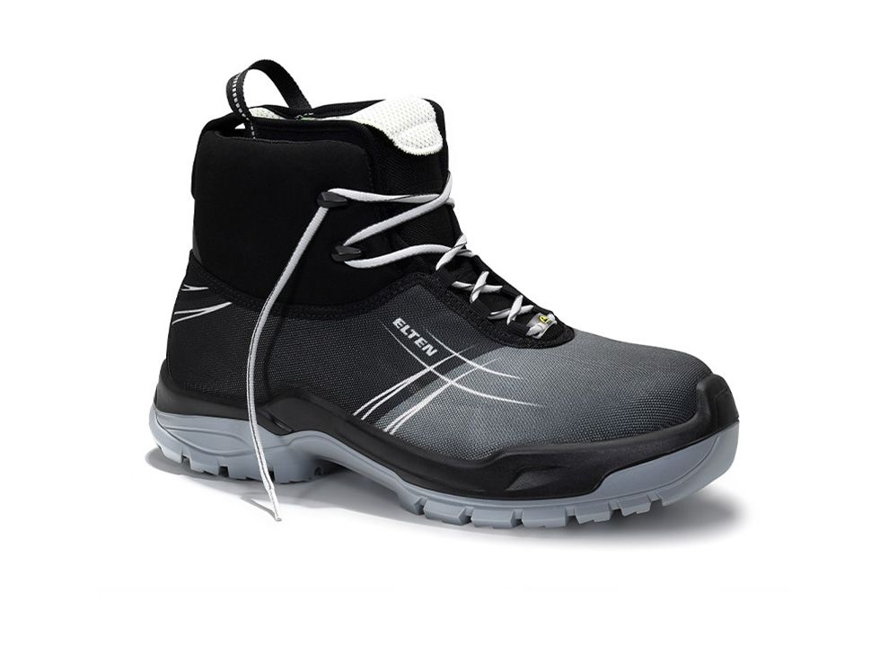 Den DIALUTION von ELTEN gibt’s jetzt auch als Stiefel. Ansonsten ist der DIALUTION Mid ESD S3 genauso sicher wie seine Vorgänger und weist ebenfalls die für diesen ganz speziellen Fußschutz erforderlichen Merkmale auf. Zum Beispiel eine weite Schaftöffnung für einen reibungslosen Einstieg. Eine hohe Zehenschutzkappe aus Kunststoff, um ein Anstoßen der Zehen zu vermeiden. Außerdem wird der Einsatz von störenden Nähten auf ein Minimum reduziert, um Scheuern zu verhindern. Aus demselben Grund hat der DIALUTION Mid ESD S3 auch eine gepolsterte Lasche. Das vermindert Druckstellen am Fuß und erhöht so den Tragekomfort. Die Einlegesohle DIALUTION ESD ist besonders weich und hilft, das Körpergewicht auf eine größere Fläche zu verteilen und vermeidet so Druckspitzen auf bestimmte Regionen der Fußsohle. Darüber hinaus bietet dieser SRC-zertifizierte und ESD-fähige Sicherheitsstiefel einen herausnehmbaren Innenschuh. So kann man noch mehr Platz für die Füße schaffen.
