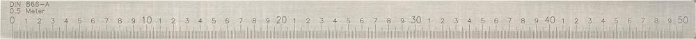 Precision ruler, DIN 866/A Design: Made of tool steel, chrome plated. DIN 866/A Protective end left 5 mm, right 5 mm Accuracy per meter ± 0.04 mm Graduation mark thickness 70 to 100 µm DIN 866/B Protective end left 0 mm, right 10 mm Accuracy per meter ± 0.10 mm Graduation mark thickness 100 to 150 µm Design: Made of tool steel, chrome plated. Protective end left 5 mm, right 5 mm. Accuracy per metre ± 0.04 mm. Graduation mark 70 to 100 µm