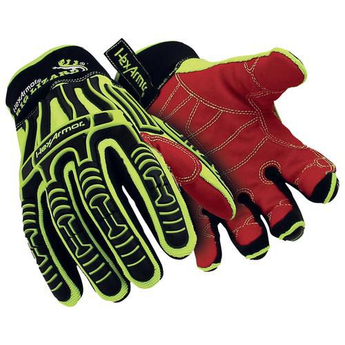 HexArmor® Rig Lizard® 2021X: Mechanic Gloves with Shock Protection The Rig Lizard® 2021X by HexArmor® is a high-quality safety glove in a signal color with sewn-on IR-X® Impact Exoskeleton shock protection and a durable TP-X® palm with reinforced seam for high-performance protection. General features Excellent durability at cut protection level C IR-X® Impact exoskeleton™ shock protection in high-flex design on the back of the hand Comfortable, high-performance glove Ultimate mobility and haptics Pull loop Washable Comfort features Optimal mobility, pre-shaped design for a great fit Form-hugging, high-quality materials Protective features 4X43CP certified according to EN 388:2016 IR-X® Impact Exoskeleton™ shock protection on the back of the hand protects the hands from strong knocks and bumps Durable TP-X® palm with reinforced seam provides confident grip in wet and dry conditions, as well as abrasion resistance Reinforced index finger and thumb saddle trim for improved durability Elastic waistband for a secure fit