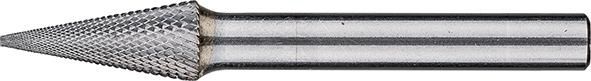 Hartmetallfrässtifte mit der Zahnung MICRO sind speziell auf die Feinzerspanung ausgelegt und werden in Bereichen eingesetzt, in denen unter anderem Schleifstifte verwendet werden. Sie bieten eine höhere Zerspanungsleistung und erzeugen eine hohe Oberflächengüte, besonders im Vergleich zu herkömmlichen gefrästen Oberflächen. Gleichzeitig arbeiten sie vibrationsarm und mit wenig Lärm. Sie behalten ihre Geometrie über die gesamte Standzeit. Sie eignen sich bestens für Bearbeitungsaufgaben im Hand- und Maschineneinsatz. Es können nahezu alle Werkstoffe bis zu einer Härte von 68 HRC bearbeitet werden. Spitzkegelförmiger Frässtift nach DIN 8032, Spitze abgeflacht.