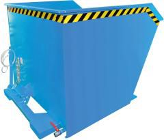 Späne-Kippbehälter, Typ SGU, mit Lochblechboden • Wanne: aus Stahlblech, Öl- und wasserdicht verschweißt mit umlaufendem Randprofil • Grundrahmen: aus Stahl mit Einfahrtaschen • Geschraubtes Lochblech: 100 mm oberhalb vom Boden, Loch-Ø 3 mm, Teilung 6 mm, Ablasshahn 1" zum Ablassen der Flüssigkeiten • Kippen in jeder Höhe per Seilzug vom Staplersitz • Sicherung gegen unbeabsichtigtes Abrutschen und Abkippen Hinweis: Geeignet zum Sammeln und Trennen der Flüssigkeit von Feststoffen. Hersteller: Bauer GmbH, Raiffeisenstr. 5, 83410 Laufen, DE, +49868289850, info@bauer-massstabfabrik.de