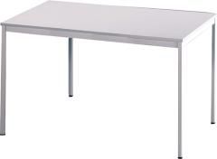 Tischplatte 19 mm dick, aus melaminharzbeschichteter Spanplatte mit 2 mm Kunststoffkante.